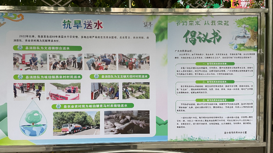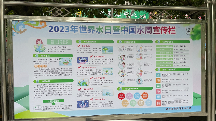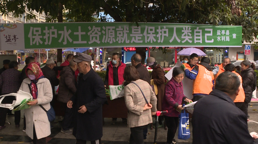 活动期间,通过张贴“强化依法治水,携手共护母亲河”等警示标语,设置节约用水和水土保持等宣传展板,发放节水宣传资料和日历、围裙、购物袋等,深入宣传各项水法法规,宣传爱水节水思路,营造良好的节约用水环境,增强我县人民依法用水和保护水环境的意识,为全面推动四川水利高质量发展做贡献,创建水资源可持续利用的良好社会环境,促进人水和谐,建设盐亭梓江“幸福河湖”。志愿者们认真地向广大市民朋友讲解节水知识,倡导节约用水,并保证意志坚定做节约用水的示范者、实践者和监督者。此次活动共发放宣传折页1000余份,宣传海报500余张,围裙200个,购物袋100个,提升了全民节水意识。