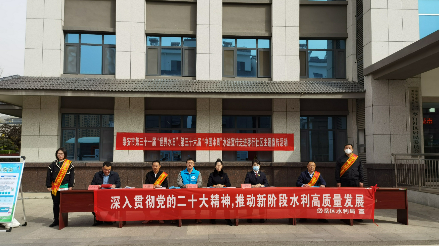 3月24日,泰安市岱岳区水利局联合泰安市水利局、泰安市岱岳区人民检察院、泰安市岱岳区粥店街道走进枣行社区,开展第三十一届“世界水日”、第三十六届“中国水周”水法宣传活动。
