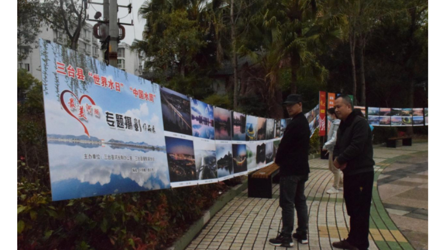 除此之外,现场还有精美的三台河湖摄影作品展出,秀丽壮阔的照片吸引了许多市民流连驻足。