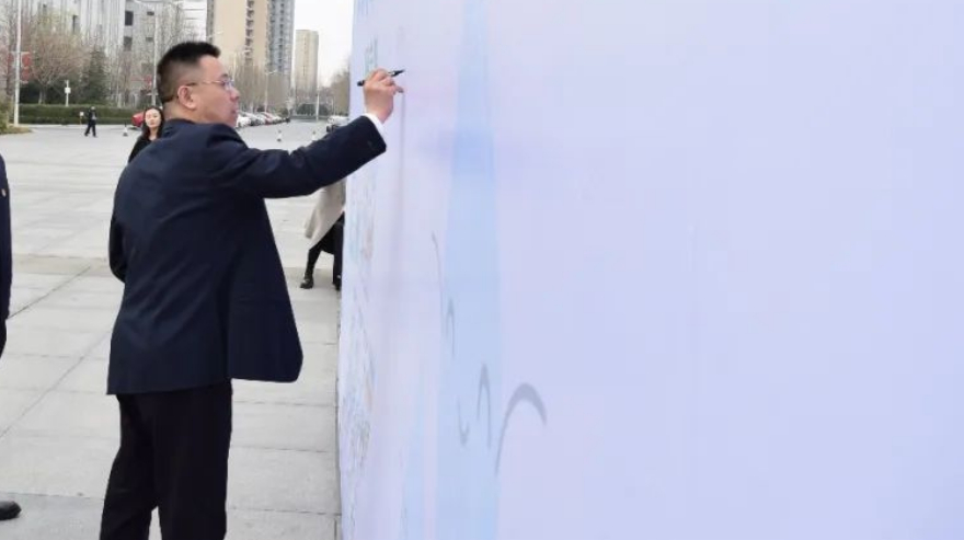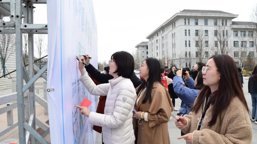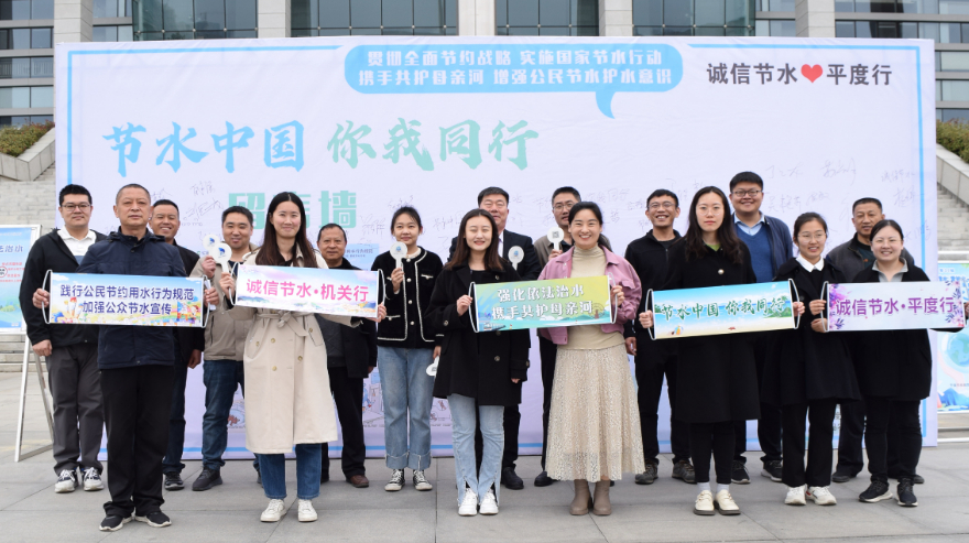 仪式上,参会人员一同宣誓,向全社会齐声发出“节水中国,你我同行,信用水利,幸福平度”的深情倡议,在留言墙上签字承诺,转发《公民节水行为规范》宣传链接,赠送节水钥匙扣。