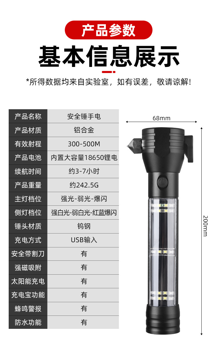 多功能安全锤手电筒